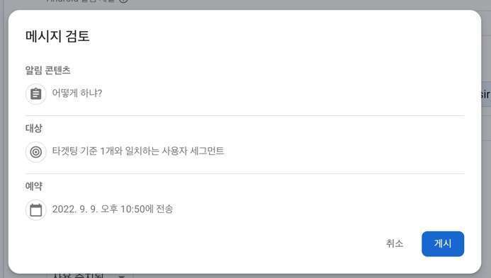 모든 설정을 마친 후 [검토] 버튼을 클릭하면 아래와 같은 창이 뜹니다. [게시] 버튼을 클릭하면 메시지가 전송됩니다.