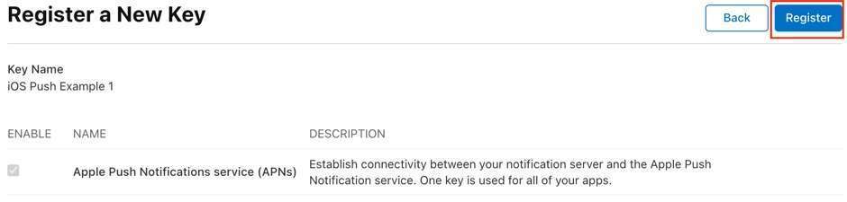 Continue를 클릭하고 다음 화면에서 Register를 클릭하여 새 키를 만듭니다.