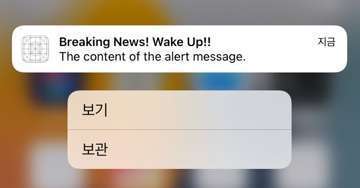 [보기]버튼 및[보관]버튼을 사용하여 트리거될 때 앱을 포그라운드(foreground)에서 여는 새 알림 작업을 만듭니다. 작업에는 iOS가 동일한 알림에서 다른 작업을 구별하는 데 사용하는 고유한 식별자(identifier)가 있습니다.- 해당 작업들을 포함할 뉴스 카테고리를 정의합니다. 여기에는 푸시 알림이 이 카테고리에 속하도록 지정하기 위해 페이로드에 포함해야 하는 고유 식별자도 있습니다.