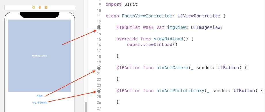 UIImagePickerController)를 멤버 변수 목록에 추가합니다.- 참고로 사진 라이브러리에서 이미지 피커 컨트롤러는 deprecated 되고, 애플은 iOS 14이상부터는