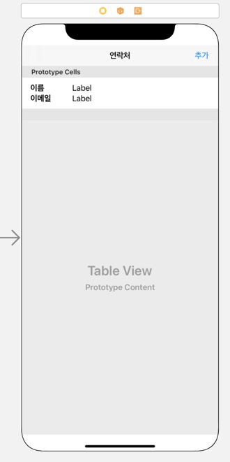 Navigation Bar, Bar Button Item, Table View, Table View Cell을 이용해 UI를 생성했습니다.