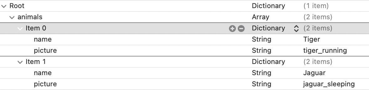 그리고 프로젝트 루트 폴더에 있는 plist 파일을 읽어와 [Animal] 타입으로 리턴하는 함수를 작성합니다.