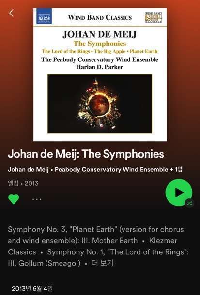 최근 감상 이력이 있는 [Johan de Meij: …] 메뉴를 클릭한 경우 해당 앨범의 페이지로 이동 (Dynamic Quick Action)[/caption]