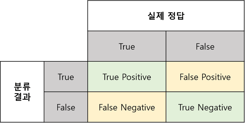 TP) : 실제 True인 정답을 True라고 예측 (정답)- False Positive(