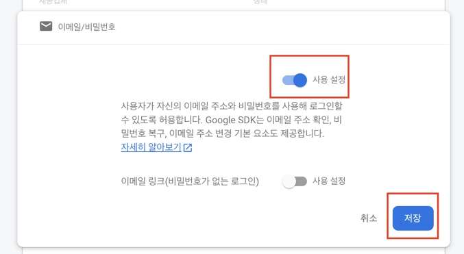 4. 사용 설정 스위치를 활성화시키고, 저장 버튼을 클릭합니다.