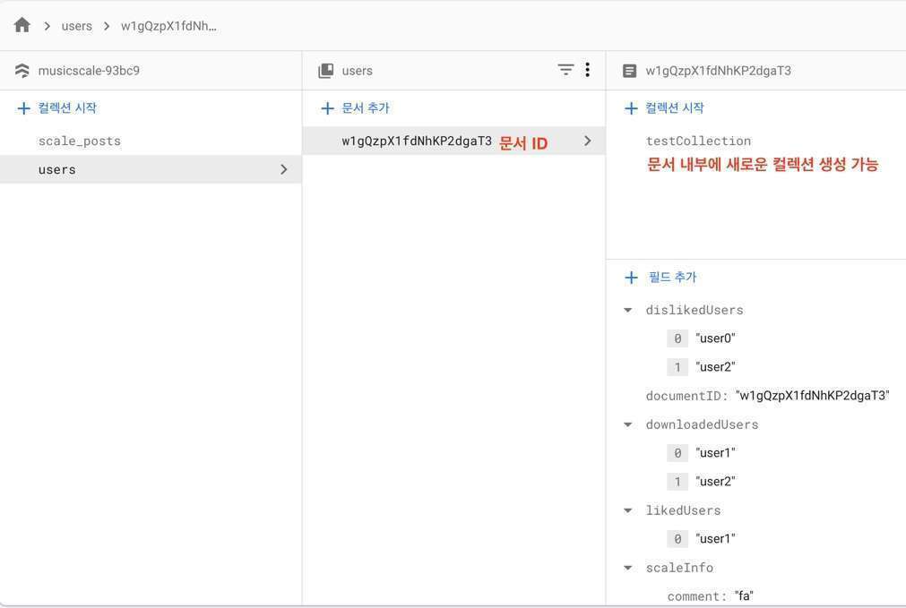 - 문서 안에 또 다른 컬렉션을 추가할 수 있습니다.
