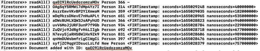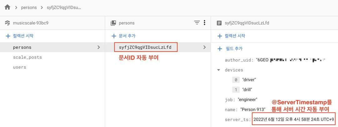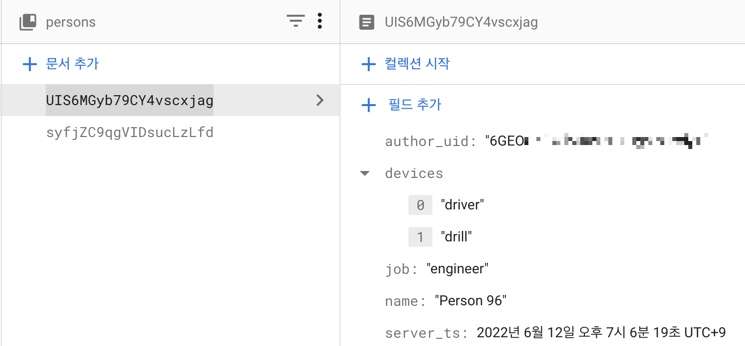 ref = personsRef.document()- 새로운 문서를 생성합니다. 괄호 안에 아무것도 지정하지 않을 경우 자동으로 문서의 ID가 생성되며, 수동으로 ID를 지정하려면 안에