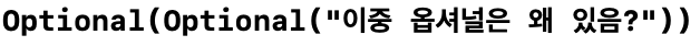var nestedOptionalString: String?? = "이중 옵셔널은 왜 있음?"