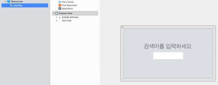 메인 뷰(MyView)에 텍스트 필드(NSTextField)를 추가합니다.