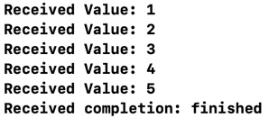 HandsUp클래스는Publisher프로토콜을 준수하며,Output타입은String이고,Failure타입은Never입니다.receive(subscriber:)메서드는Subscriber를 받아, 비동기적으로 데이터를 발행하고 완료 상태를 전달합니다.- 비동기적으로 “LeBao”, “AiBao”, “FuBao” 문자열을 전달하고, 발행이 완료되었음을 알립니다.