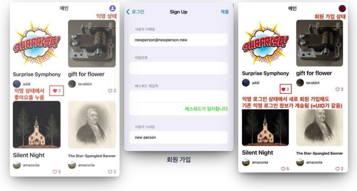 익명 로그인이 존재하지 않고, ‘좋아요’ 버튼을 누르려면 무조건 회원 가입이 되어 있어야 합니다.