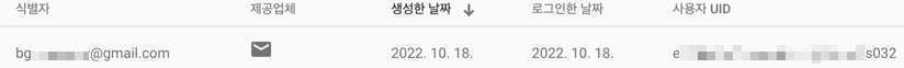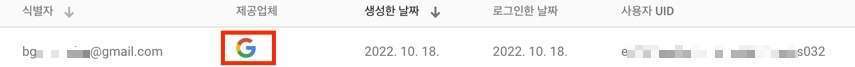 3.동일한 구글 아이디의 계정으로 로그인하면 제공 업체가 구글로 바뀌며, UID는 그대로