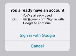 - 구글 계정으로 가입한 상태에서 이메일 계정으로 로그인을 시도하는 경우 구글로 로그인하라는 메시지가 표시됩니다. 1번 케이스와 같이 기존 이메일 계정이 구글 계정으로 대체된 경우에도 동일합니다.