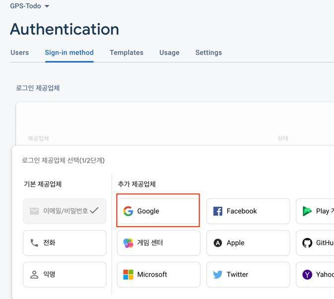 Firebase 콘솔에 접속해서 좌측의 빌드 > Authentication > Sigin-in Method 페이지로 들어갑니다. [새 제공업체 추가] 버튼을 눌러서 _Google_을 추가합니다.