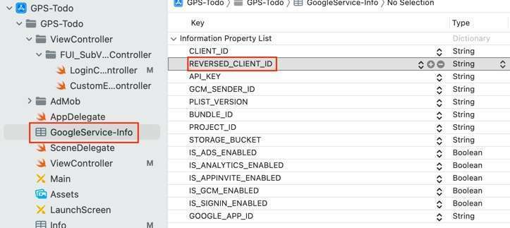 GoogleService-Info.plist 파일에서 REVERSED_CLIENT_ID 값을 복사합니다.