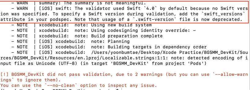s.swift_version- SPM에서 5.0 이상만 사용하도록 설정했으므로 여기도 5.0으로 지정합니다.