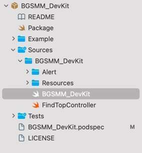 Sources 폴더에는 실제 코드를 입력하는 곳이며 프로젝트 설정 시 입력했던 이름과 동일한 BGSMM_DevKit.swift 파일이 기본으로 제공됩니다.