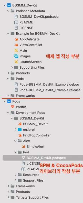 - 별도의 폴더에서 CocoaPods 프로젝트를 생성한 뒤 필요한 파일만 복사해 Swift Package Manager 폴더로 복사합니다.