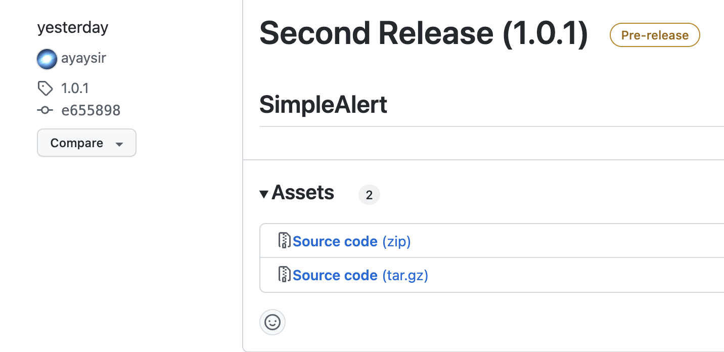 - GitHub 레퍼지토리에 푸시한 뒤 버전 태그를 생성하고 태그로부터 릴리즈를 생성합니다.