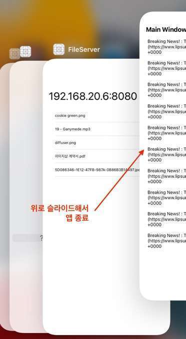 앱이 완전히 종료된 상태를 만드려면 위의 그림처럼 앱을 종료합니다.