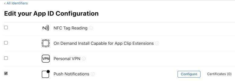 - 푸시 알림 권한으로 앱을 컴파일할 수 있는 Apple 개발자 프로그램 멤버십.