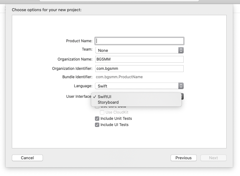 User Interface에서 SwiftUI를 선택합니다.