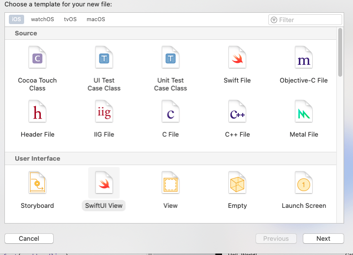 새로운 Swift UI 파일 생성
