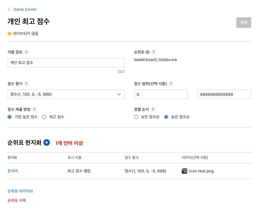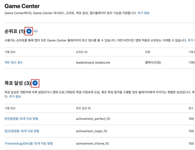 먼저 Apple Developer 계정에서 Game Center에 업적을 추가해야 합니다.