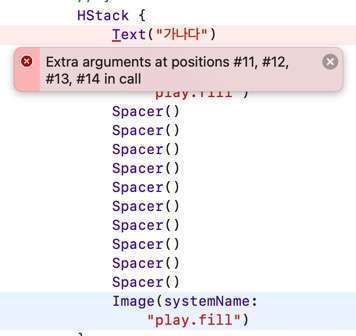 Spacer또한View이기 때문에 스택 당 최대 뷰의 개수10개를 초과하면 오류가 발생합니다.