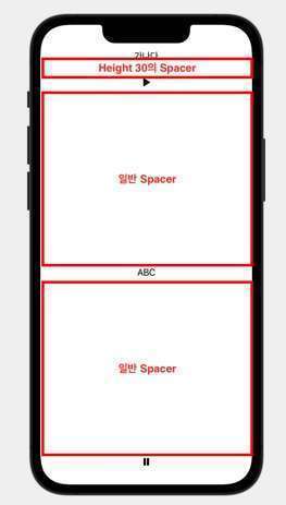 Text와Image간Spacer를 사용하면 텍스트, 이미지 부분을 제외한 나머지 영역 전부를Spacer가 차지하게 됩니다.-