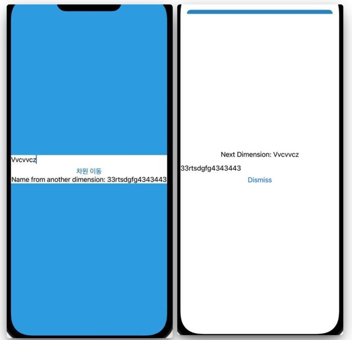 AnotherView의 파라미터로name에 현재ContentView의 이름(name)을 지정하면 다음 뷰에서 데이터를 받아올 수 있습니다.