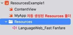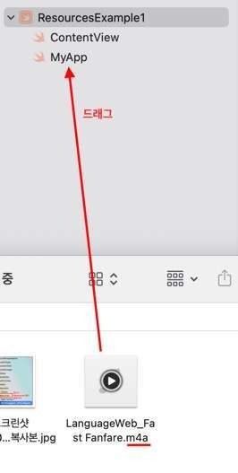 새로 생성할 때 반드시 임의로 생성하지 말고 .m4a 등의 파일을 드래그해서 저절로 생성되는 Resources 폴더를 이용해야 합니다.