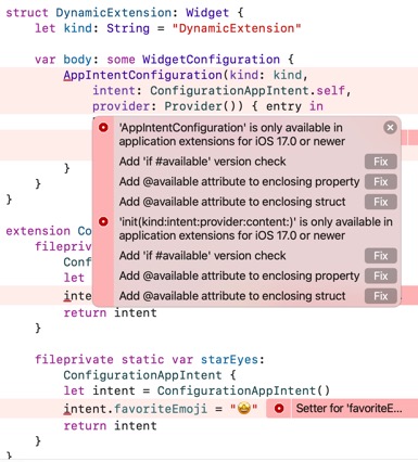 IntentConfiguration(kind: kind, intent: ConfigurationIntent.self, provider: Provider()) { entry in