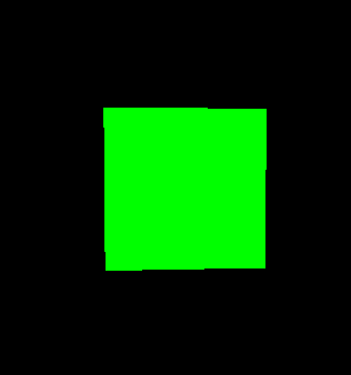 위 코드를 모두 시작하기 전에 작성한 파일에 삽입하면 녹색 상자가 나타납니다. 그것을 돌려서 조금 더 재미있게 만들어 봅시다.