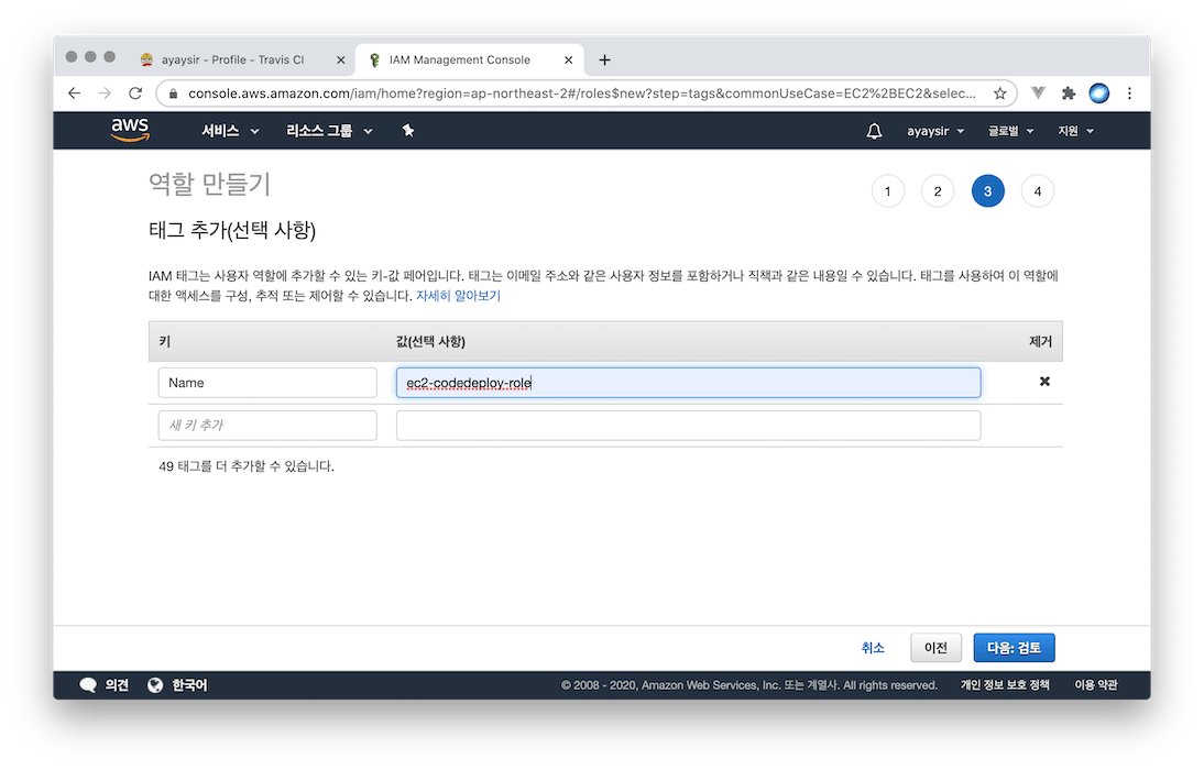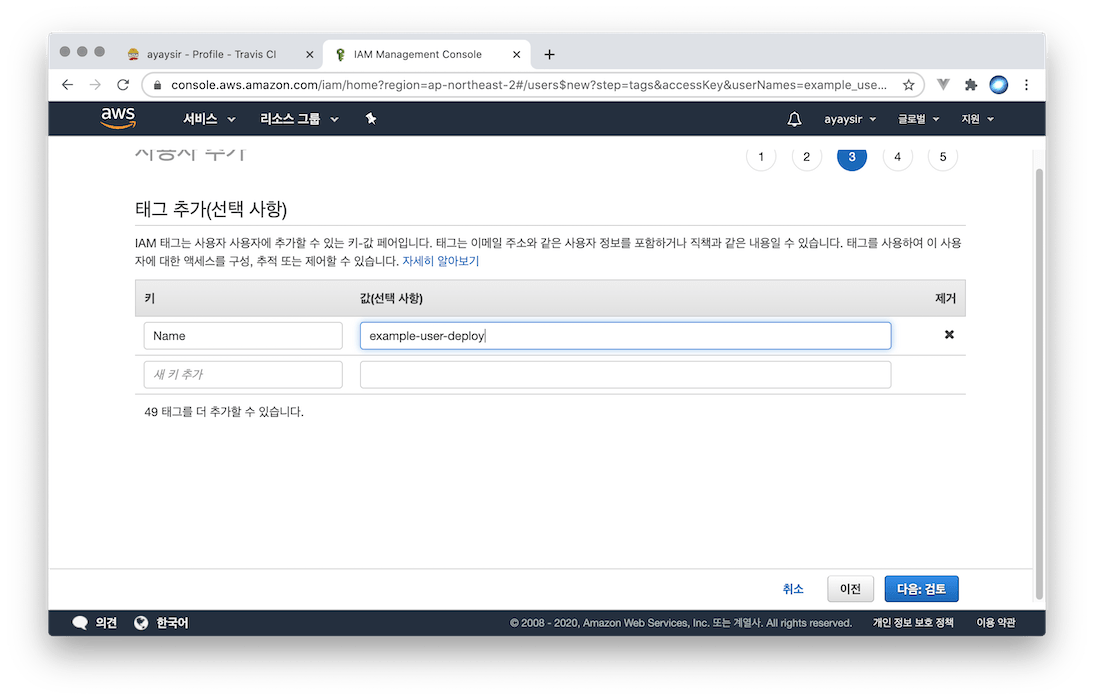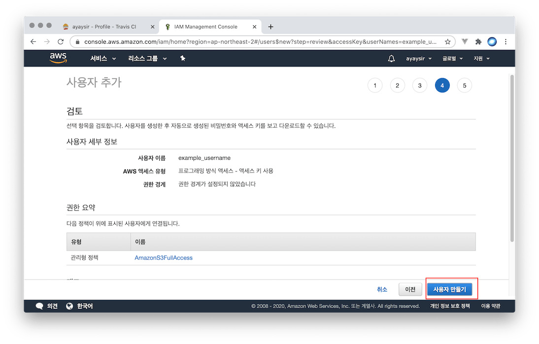3. AWS에서 Travis-CI가 접근할 수 있는 사용자를 IAM에서 생성