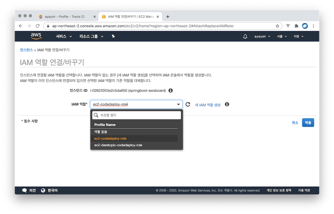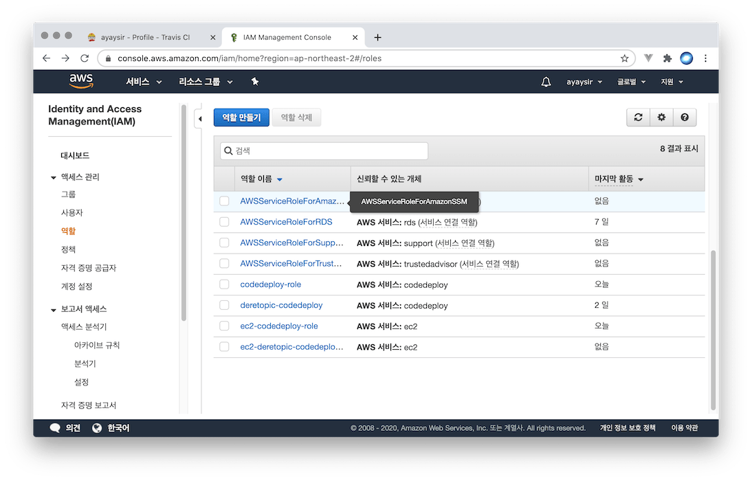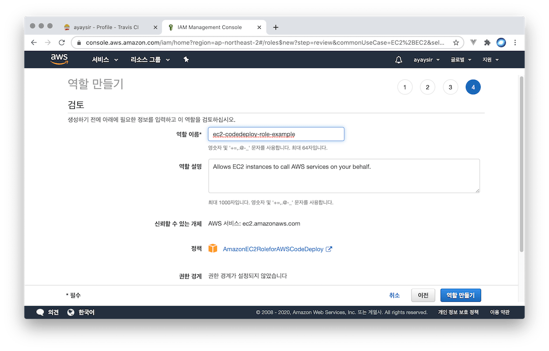 [AmazonEC2RoleforAWSCodeDeploy] 체크