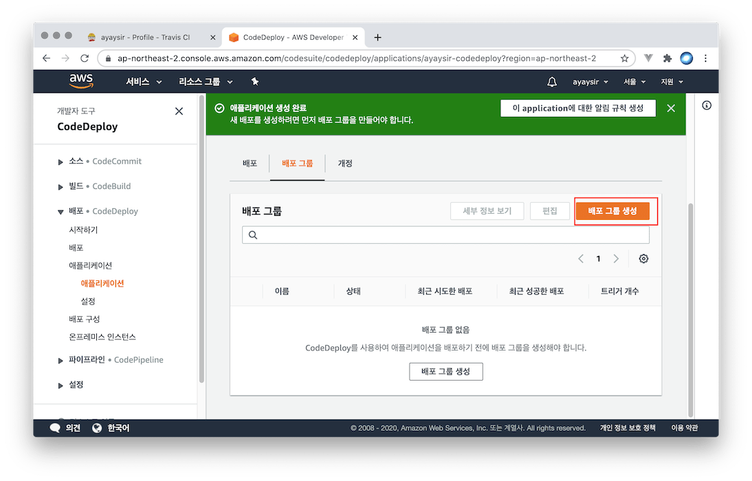 CodeDeploy애플리케이션 및 배포 그룹 생성 - EC2 리눅스에 코드디플로이
