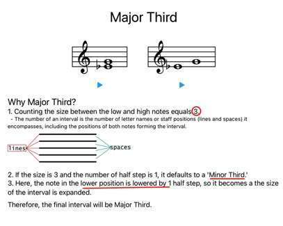 다만 한 가지 굉장히 신경을 쓴 기능이 있는데 그것만 설명하자면 View Detail 페이지입니다. 어떠한 음정을 View Detail 버튼을 누르면 해당 음정이 어떤 과정으로 도출되는지에 대한 설명이 나오는데, 겉보기는 일반적인 보고서 형식이지만 실제로는 모든 음정의 경우에 대응하여 해당 음정에 맞는 설명이 문장 형식으로 나오도록 프로그래밍 하였습니다.