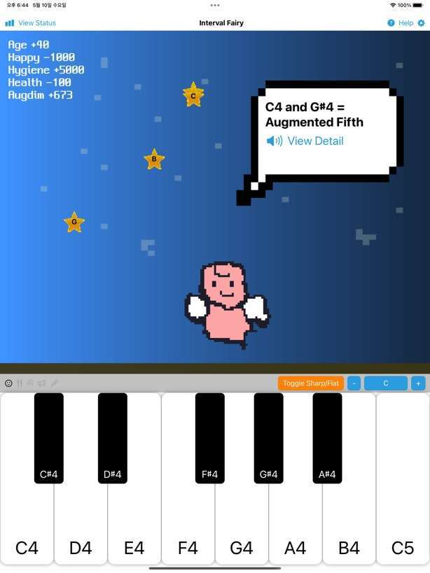 이 앱은 음악 이론 중 음정(interval)을 다마고치 형식을 통해 쉽고 재밌게(?) 배우게 하고자 하는 목적으로 제작되었습니다.