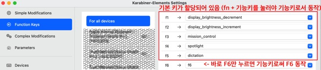 Karabiner-Elements 설치 후 Function Keys 탭으로 이동합니다.