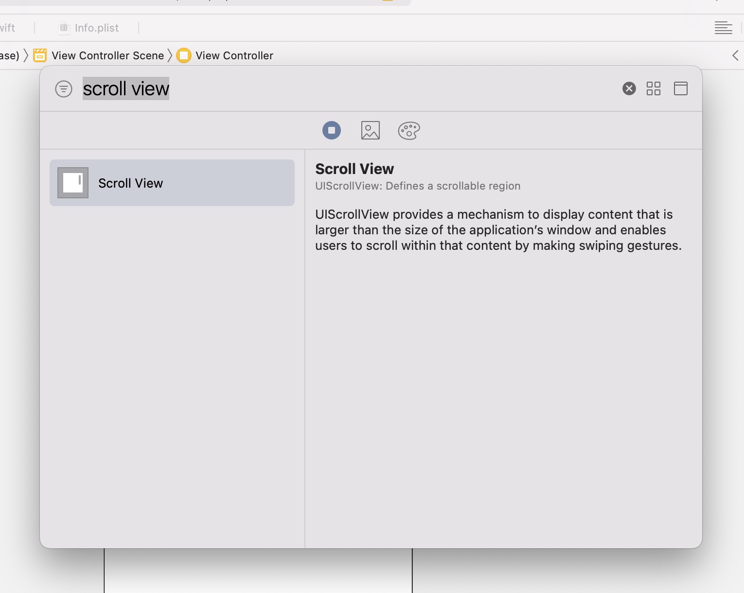 뷰 컨트롤러에 Scroll View 를 추가합니다.