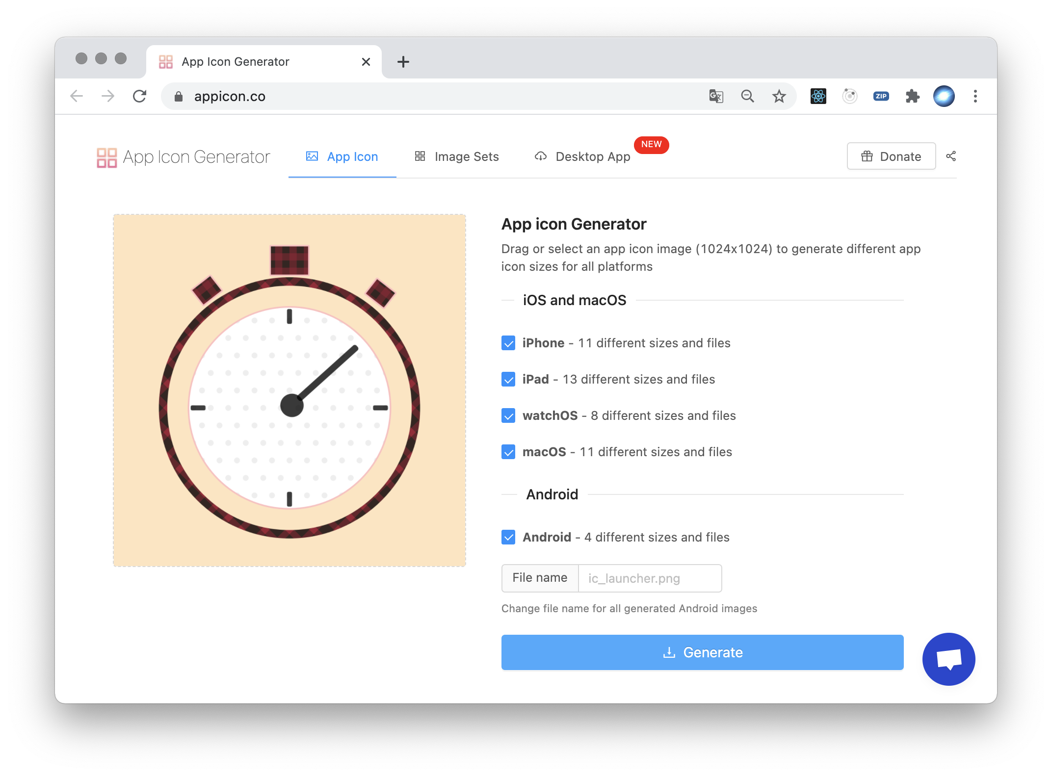 2) App Icon Generator 사이트에 접속한 다음 이미지를 업로드합니다.