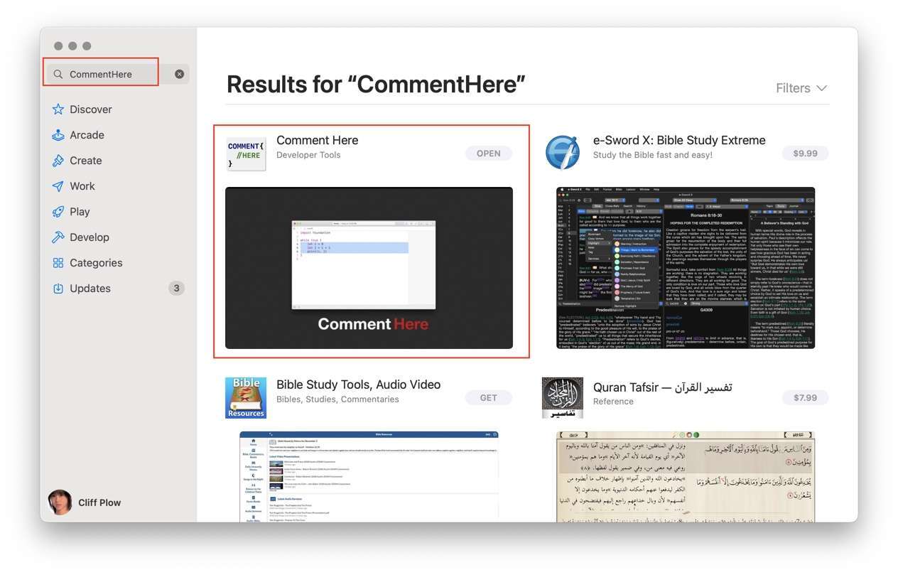 1. 맥 앱 스토어(App Store)에서 CommentHere라는 앱을 설치합니다.